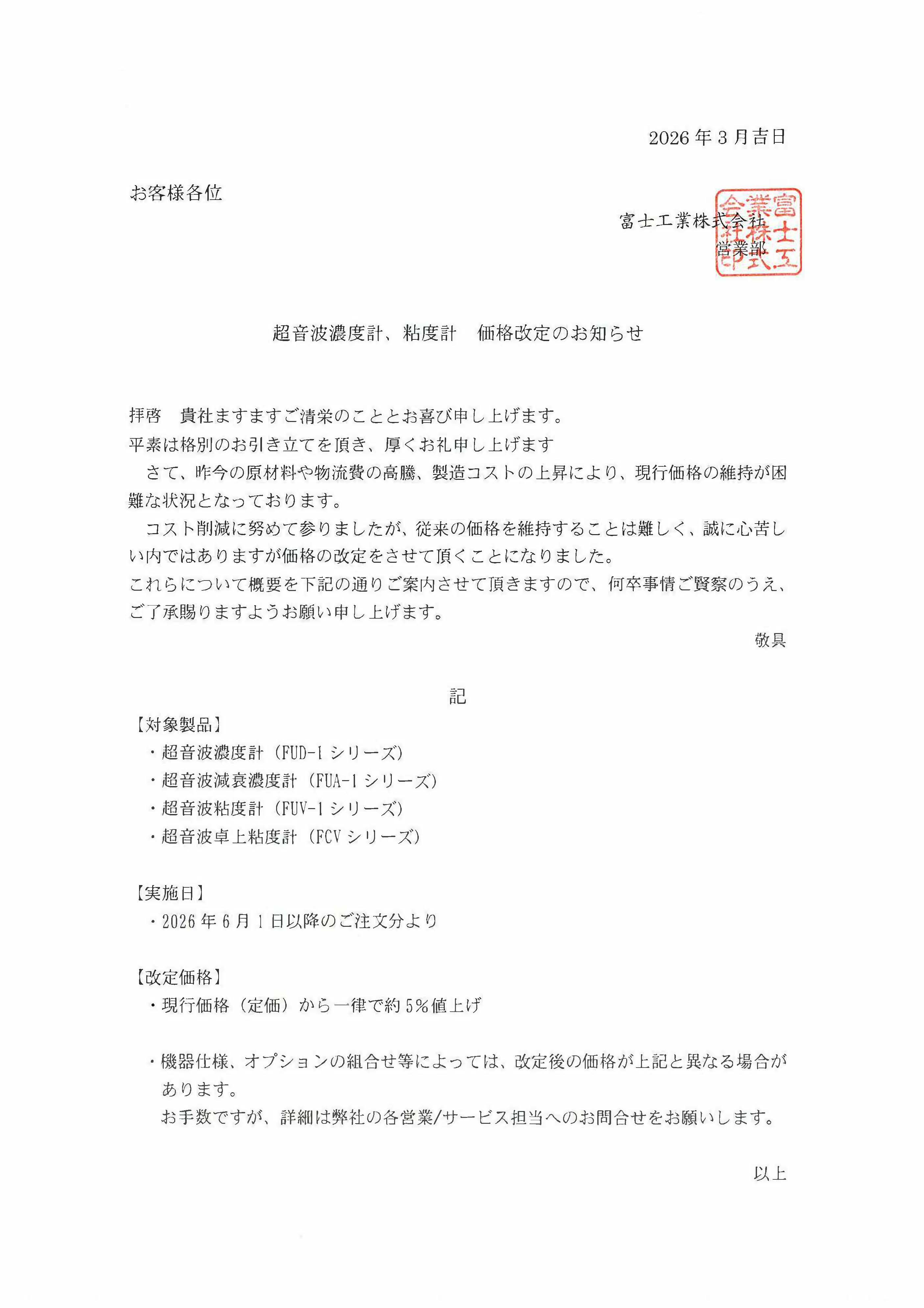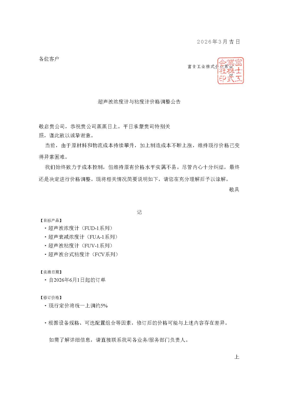 富士工业超声波浓度计涨价通知-烟台日特测量仪器有限公司